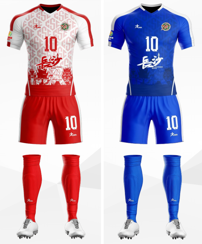 长沙队队服以热烈的红色与纯净的白色为主色调,红色象征着长沙火辣的城市性格,白色则代表着湘江水的清澈灵动。