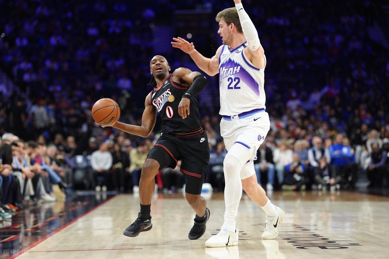 76人此前遭遇两连败,33胜28负排在东部第六,急需一场胜利提振士气;爵士则遭遇六连败,18胜43负稳居西部倒数第二,状态低迷。上半场,双方短暂相持后,菲利波夫斯基半节就累计3次犯规,陷入犯规麻烦,76人抓住机会内外开花,轰出15-3的攻击波取得两位数领先。此后爵士不甘示弱,不断冲击内线连投带罚追赶比分,次节76人命中率下降,爵士稳扎稳打缩小分差,半场战罢76人53-48领先5分。